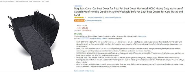 以寵物汽車坐墊為例,作用是防止寵物抓爛汽車真皮、吃喝拉撒弄臟車,這很明顯是一款生命周期較長的產(chǎn)品,幾年可能也難有變化,想要拱掉原來的霸主,就要質(zhì)量細(xì)節(jié)為王。下圖的賣家就認(rèn)準(zhǔn)了這個(gè)市場,在質(zhì)量、價(jià)格、外觀,運(yùn)營端(主要)等方面下了很大功夫,最終憑借37個(gè)評價(jià)全5星,就搶到了best seller。
